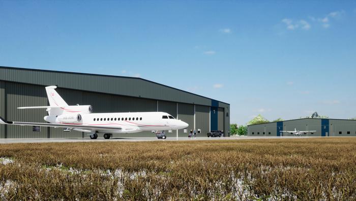 The 28,800-sq-ft hangars—each capable of sheltering the latest ultra-long-range business jets—were developed by Wiens Real Estate Ventures and HDN Hangar Investment Group, which contracted Desert Jet to run them.