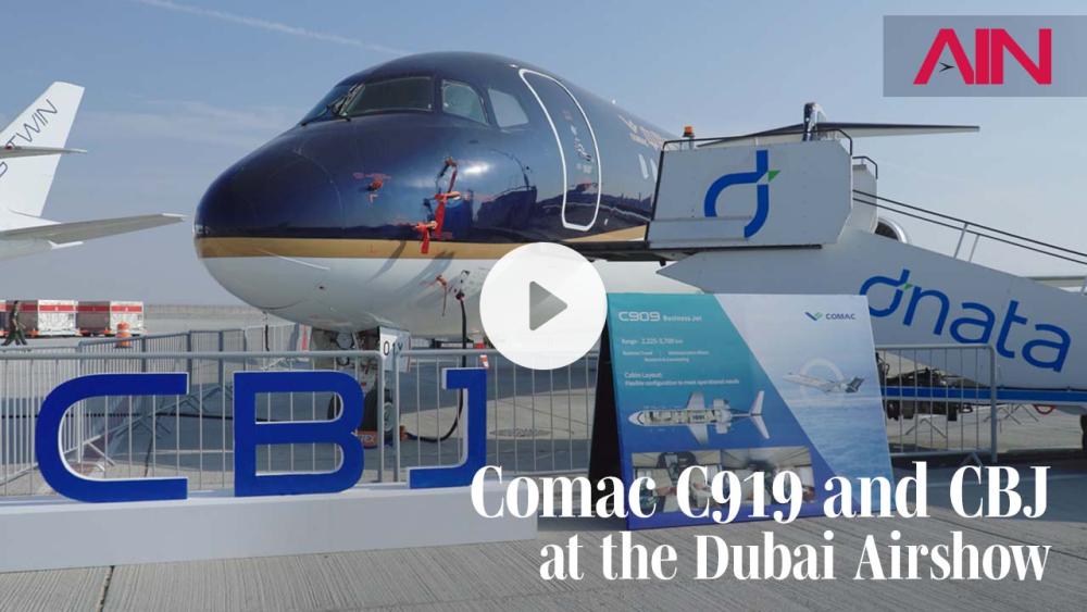 At the Dubai Airshow, Comac displayed its C919 airliner and CBJ business jet. AIN toured the CBJ's cabin interior, developed as an alternative to Western business jets.