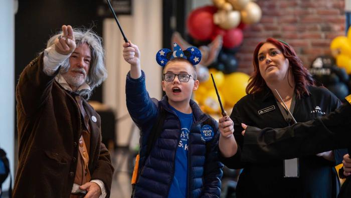 A magical experience. Jet Linx teamed up with Make-A-Wish Nebraska to surprise 15-year-old Keyton Crone (center) with a Harry Potter-inspired send-off on Monday ahead of his wish trip to The Wizarding World of Harry Potter at Universal Studios in Orlando, Florida. The company’s Omaha FBO lobby was transformed with themed decor, including floating candles, a Platform 9-3/4, custom wand presentation, sorting hat, and Hogwarts-style VIP badges. Keyton’s family was also onsite for the surprise. Thanks to the Jet Linx team for sharing this photo!