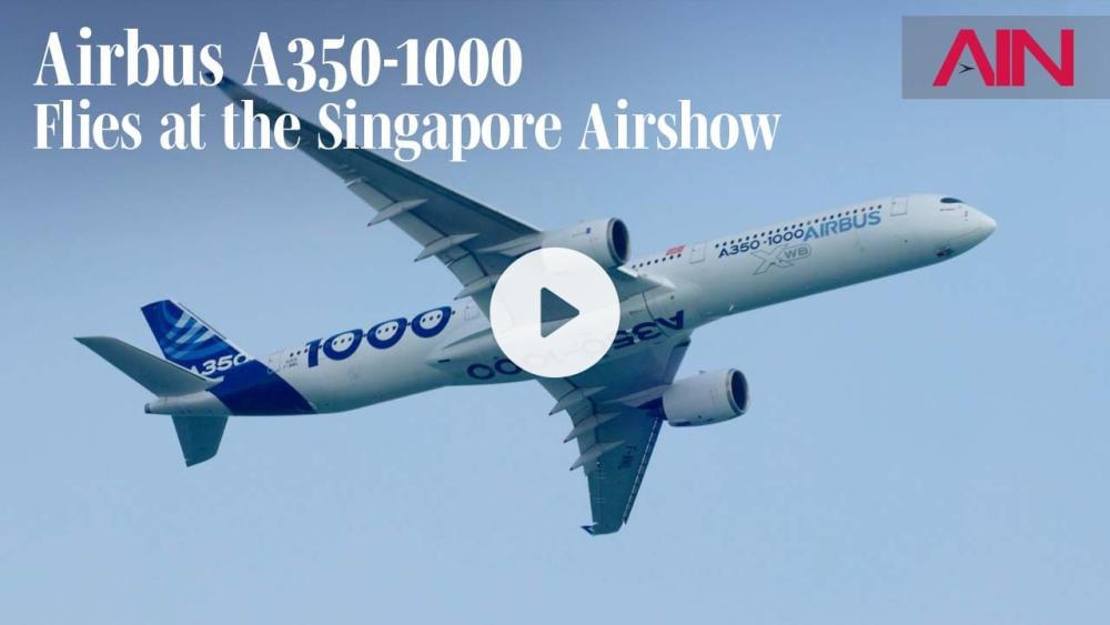 Airbus A350-1000 Airliner Flies at the Singapore Airshow