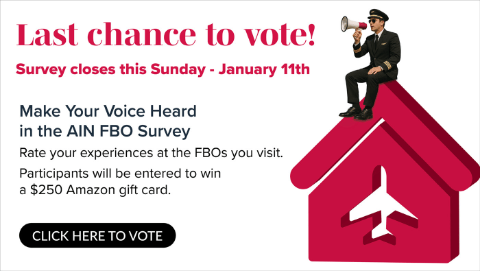 Keep them coming. If you’d like to submit an entry for Photo of the Week, email a high-resolution horizontal image (at least 2000 x 1200 pixels), along with your name, contact information, social media names, and info about it (including brief description, location, etc.) to photos@ainonline.com. Tail numbers can be removed upon request. Those submitting photos give AIN implied consent to publish them in its publications and social media channels.