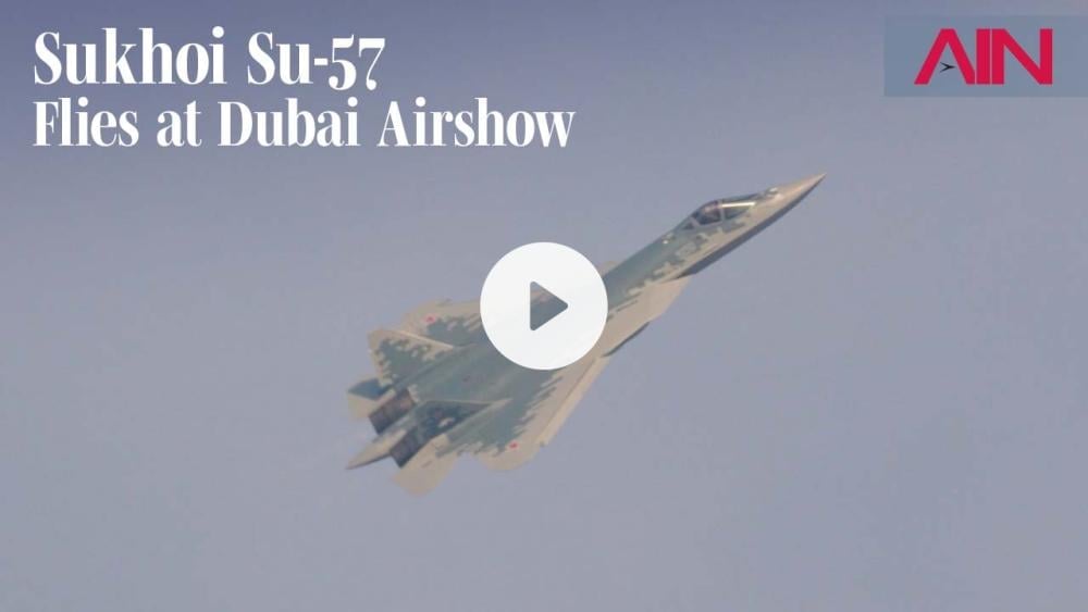 Russian Sukhoi Su-57 Flies at Dubai Airshow 2025