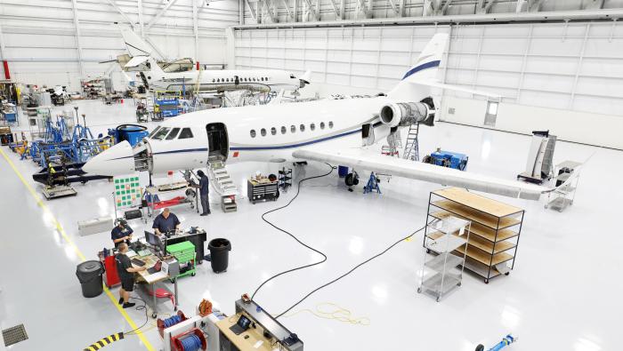 Dassault Falcon Jet opened its new service center at Melbourne Orlando International Airport (KMLB) this week. The French airframer said the investment significantly boosts its capacity to provide maintenance, repair, and overhaul (MRO) support for operators of its business jets in North and South America. The 250,000-sq-ft complex can accommodate all current Falcon aircraft, as well as the ultra-long-range Falcon 10X now in development. There is space for technicians to work on up to 14 jets simultaneously. Dassault’s Melbourne facility is equipped to handle a full range of inspection, repair, and overhaul tasks, from line maintenance through to C checks, as well as engineering and modifications projects. It includes a 54,000-sq-ft aircraft paint shop, as well as other workshops, customer offices, and lounges. “Our state-of-the-art Melbourne MRO is the latest expansion of our worldwide network of more than 40 service locations,” said Éric Trappier, chairman and CEO of Dassault Aviation. “It adds significant capacity in the Americas and puts more service capability closer to our Falcon customers. Dassault already has a large footprint in the United States, which includes 2,500 employees, aircraft completions, and sales.” |