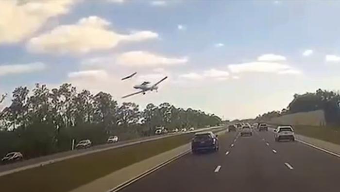 The twinjet touched down on I-75 South at approximately 15:10:47. According to dashcam video, the Challenger then veered into the right grass shoulder before hitting a concrete sound barrier and catching fire.